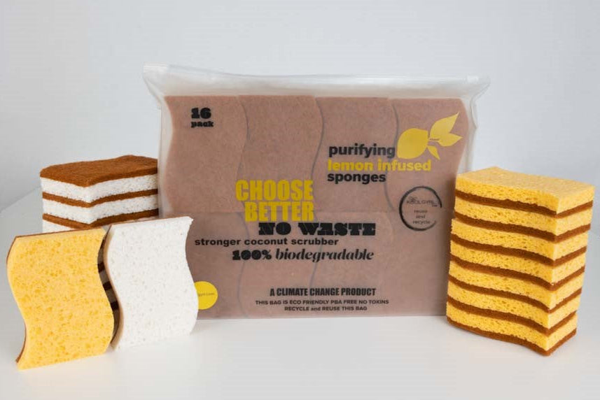 Biodegradable Kitchen Sponges with Scrubber - Lemon Infused